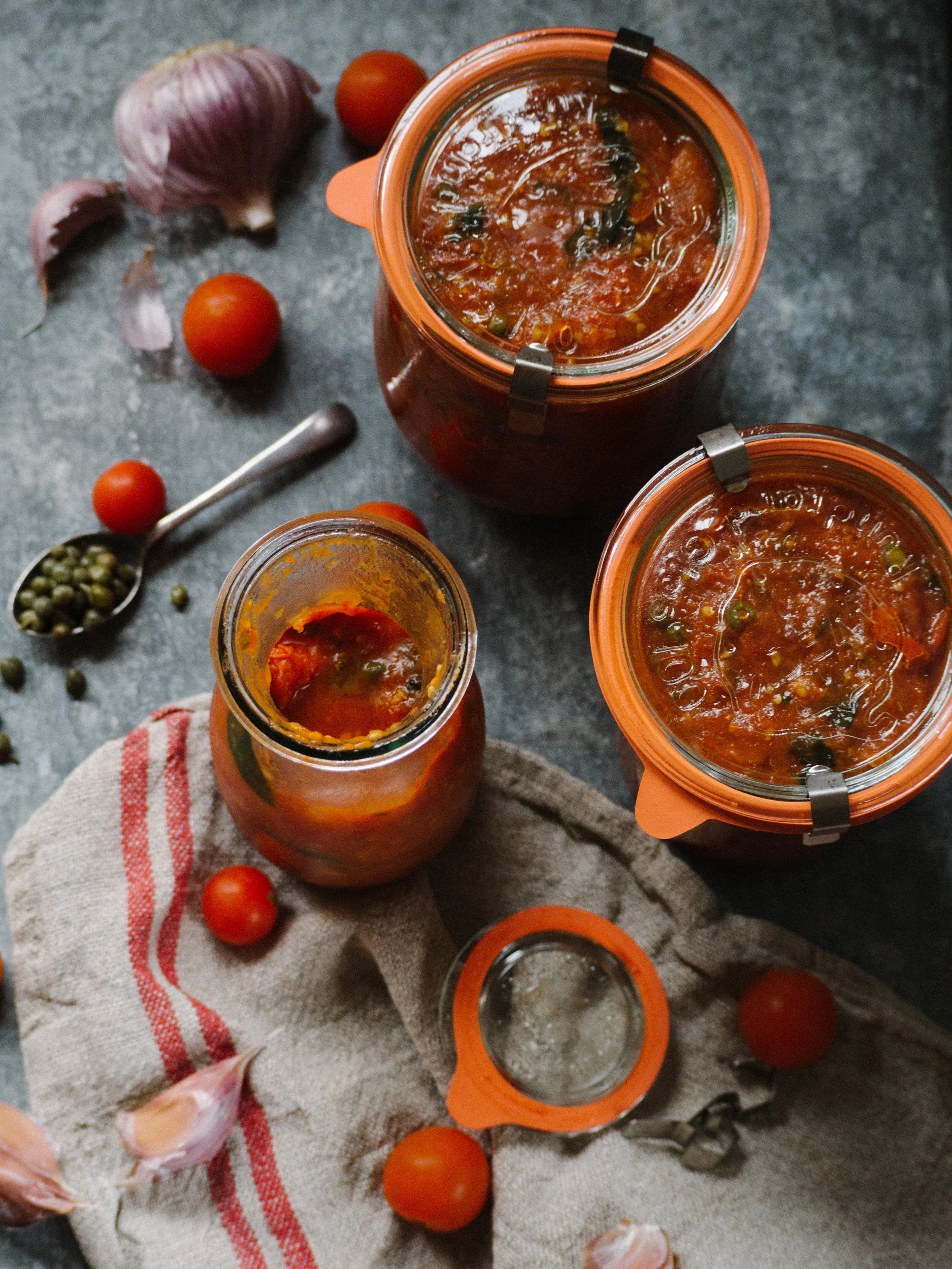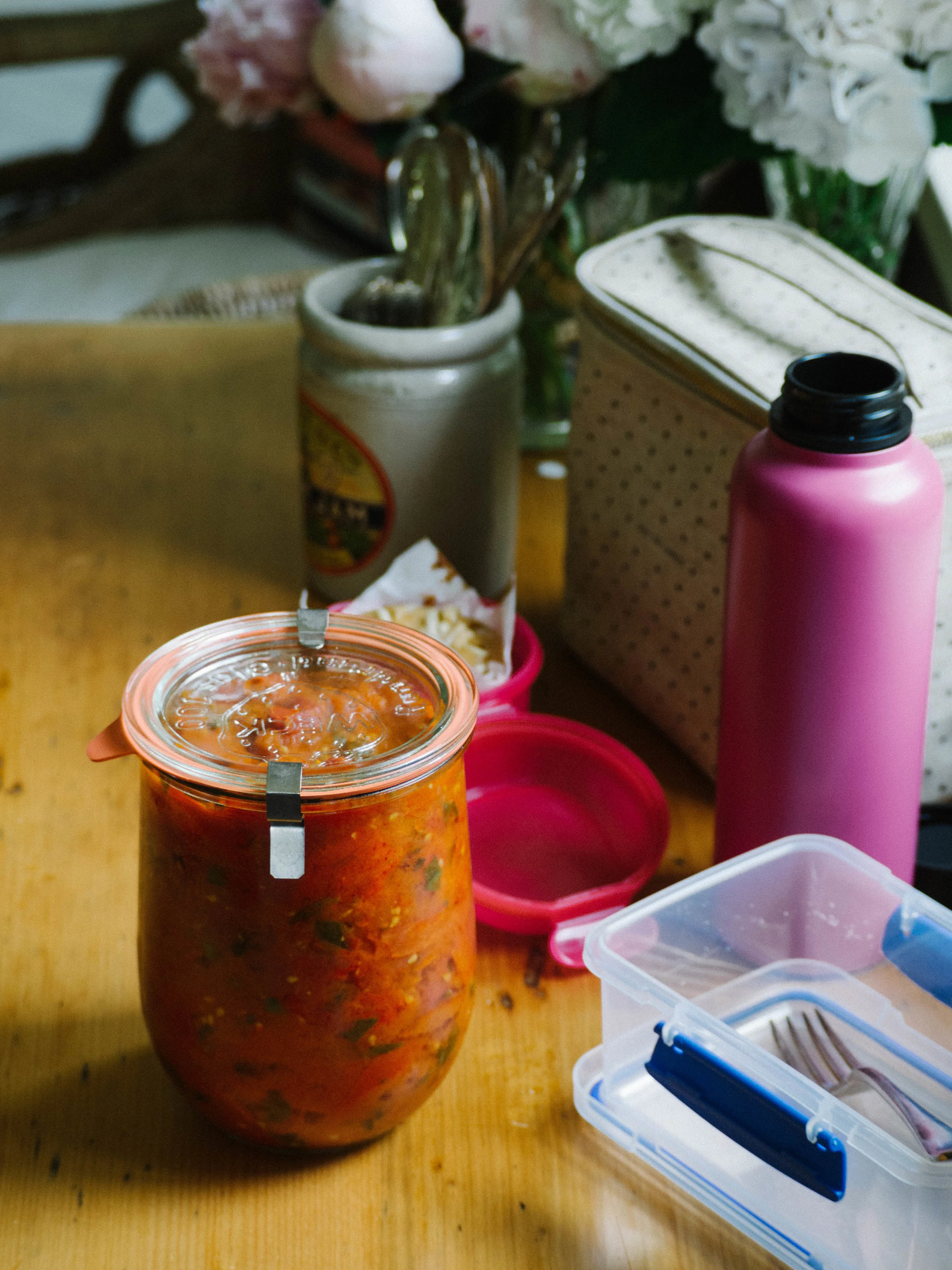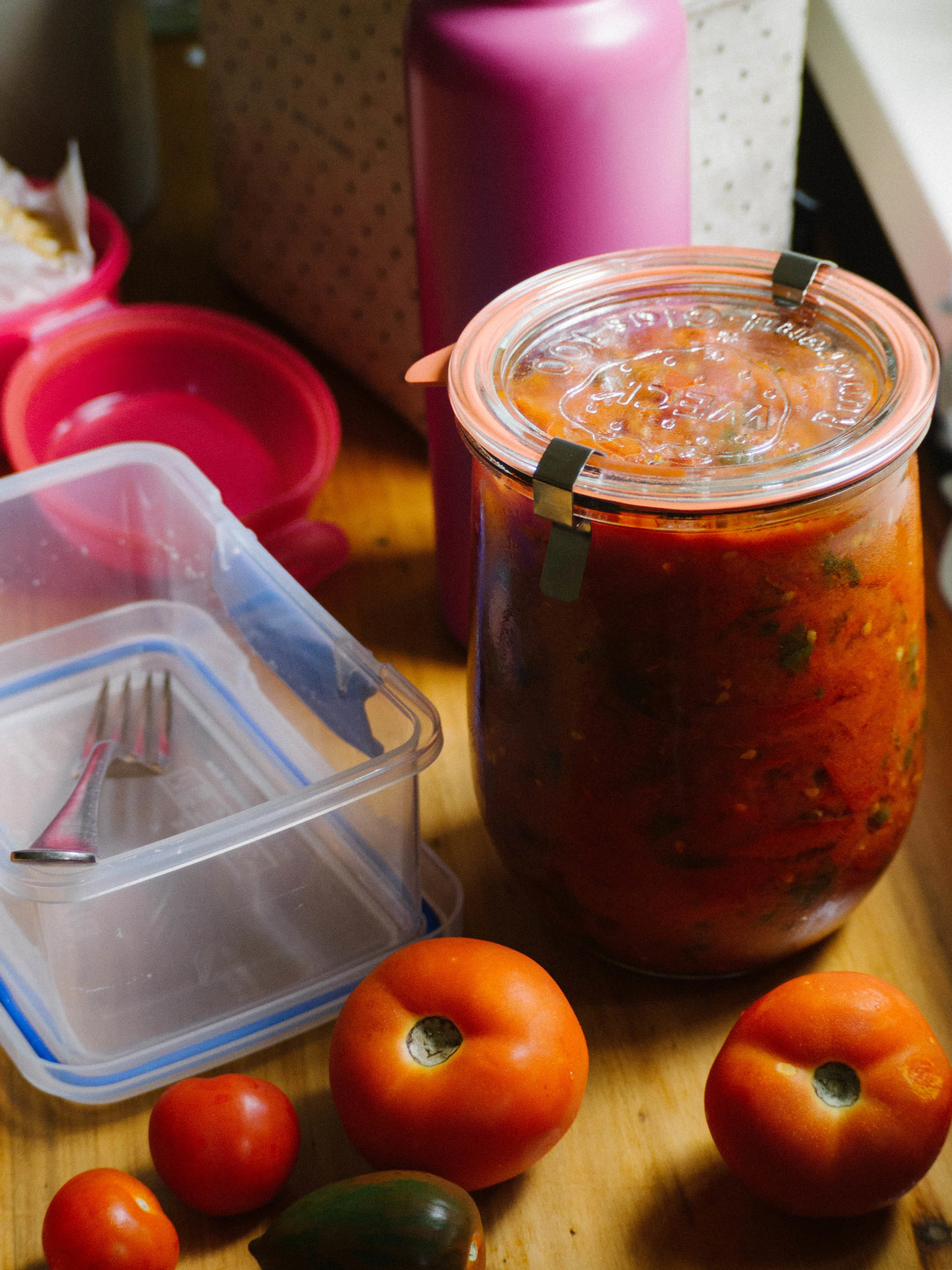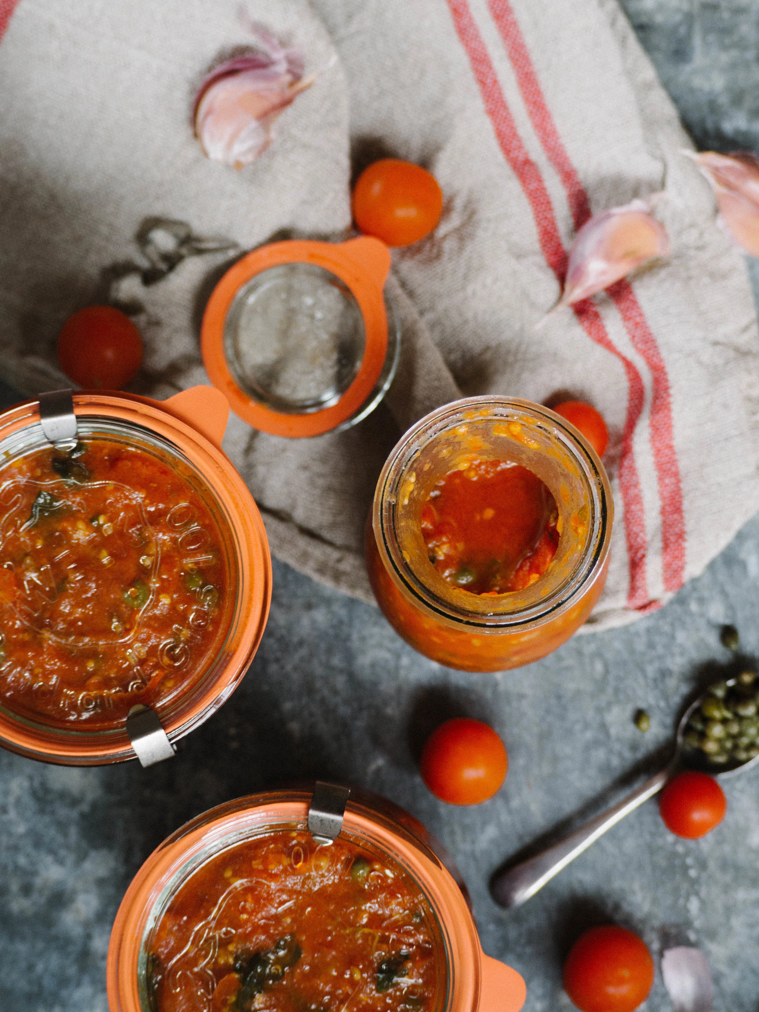 This recipe is a quicker adaptation to this one I posted quite a while ago. I needed it to be quicker as even though I like cooking, I don’t want to spend all my time preparing for the work week. I tend to use whatever tomatoes are cheapest to buy, like the ‘imperfect picks’ or the ones that are quite ripe and ready for a quick sale. Once the sauce is cooked I store it in large glass jars in the fridge (like the ones pictured in this post).