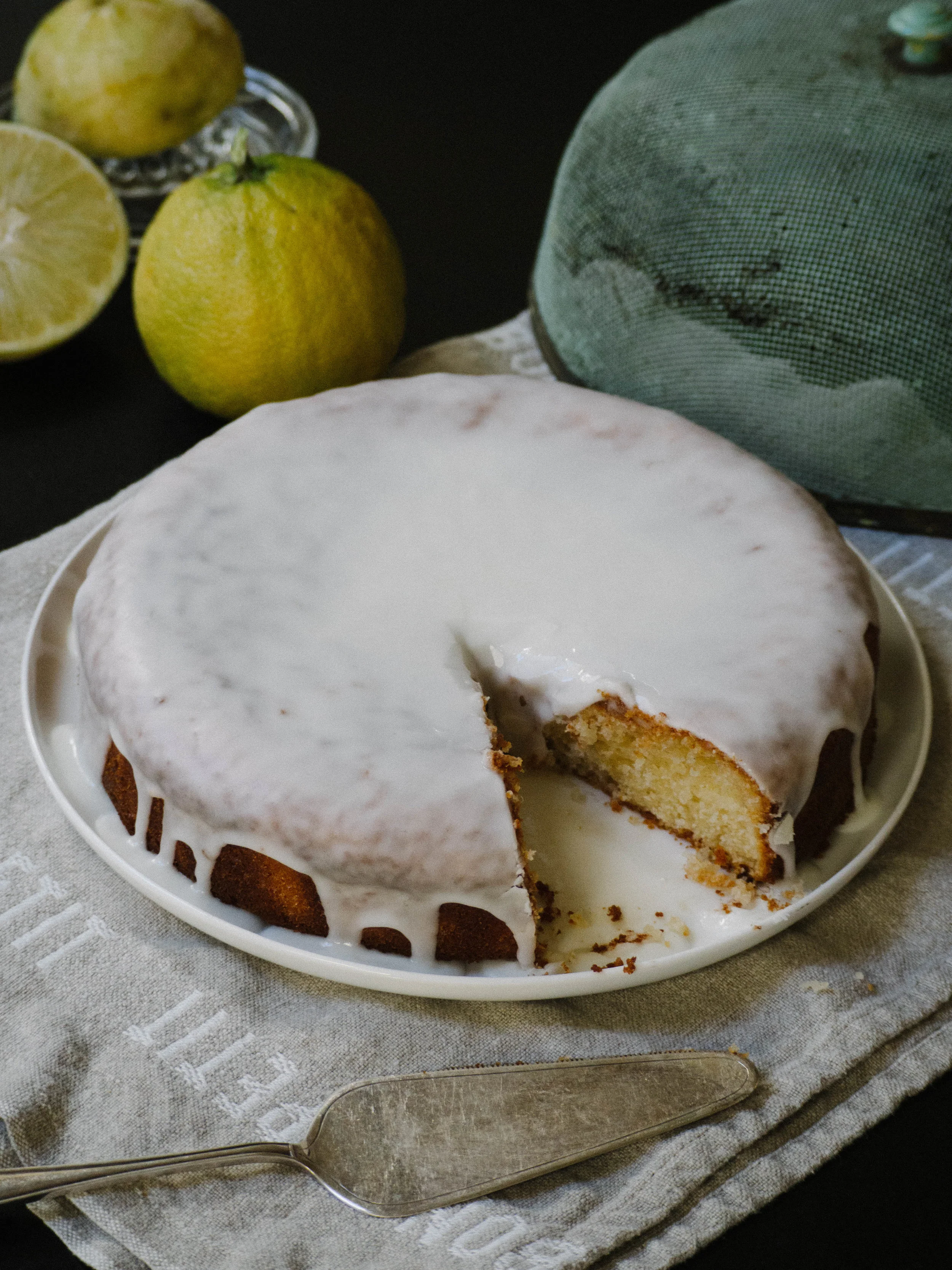 To make the icing, whisk the icing sugar and 2 tbsp of the citrus juice together, adding more juice to get the right consistency if needed. You want the icing to be smooth, but not overly runny or it won’t cover the cake evenly. Spread the icing over the cake, allowing it to drip down the sides a little.