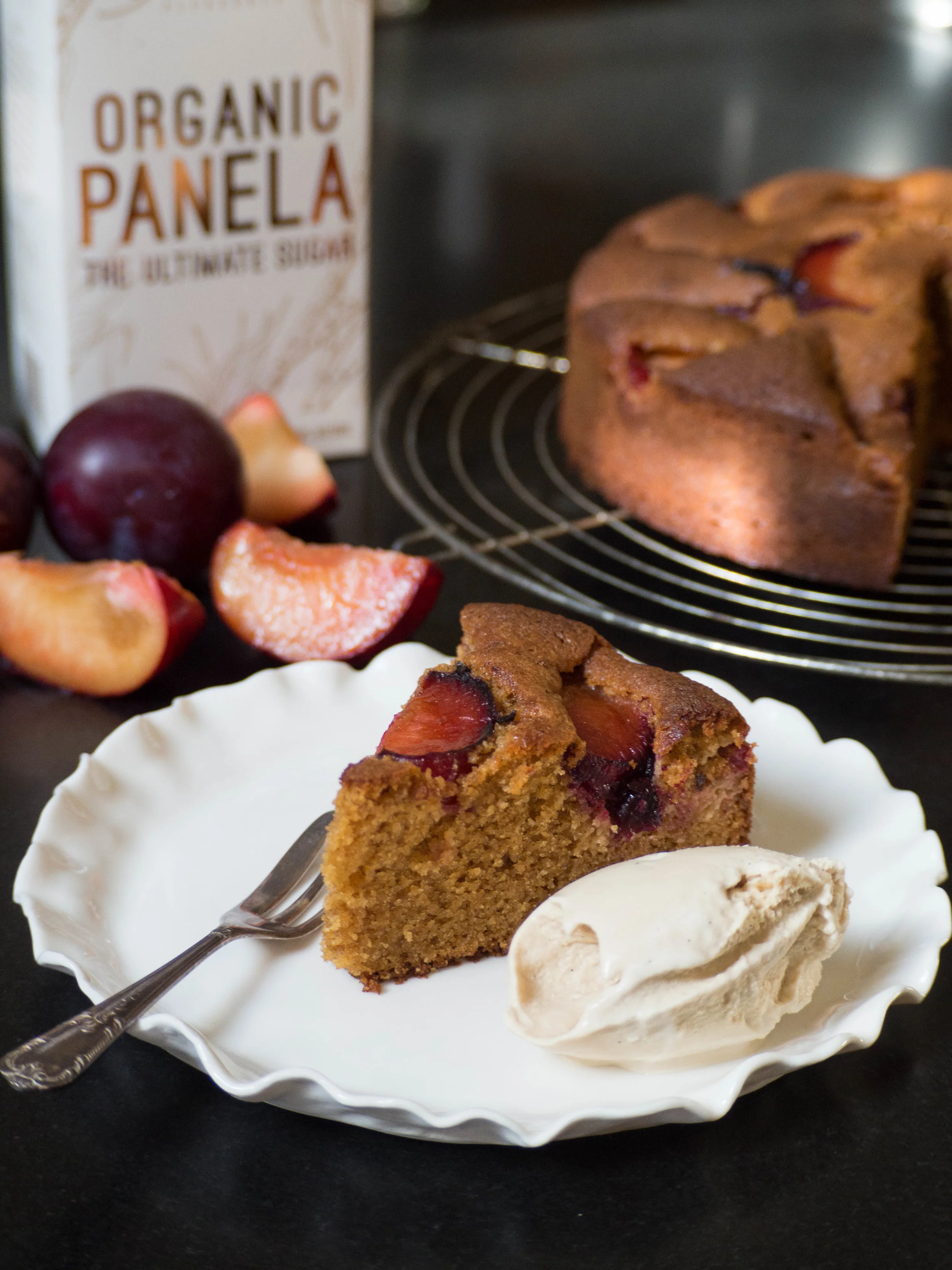 How to Bake with Panela Sugar - Plum & Panela Cake with Vanilla & Panela Ice Cream