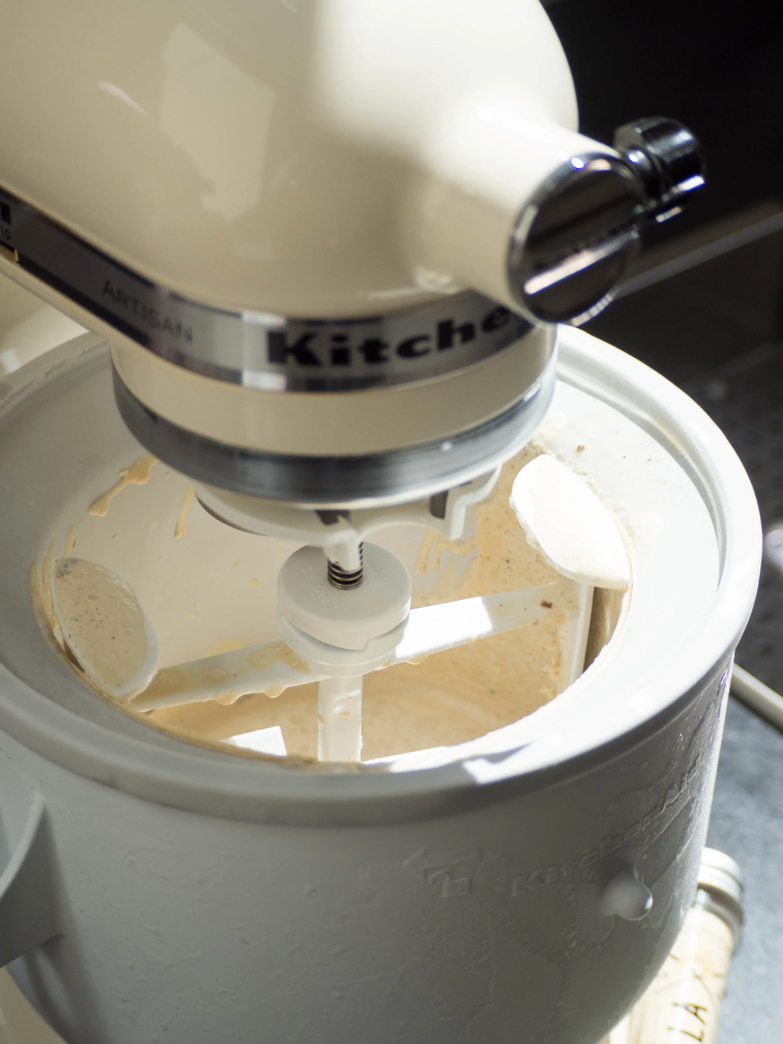 Transfer mixture into the bowl of an ice cream machine, and process according to machine instructions. Once ready, transfer ice cream into a freezer safe container and freeze for at least 4 hours (overnight is best).