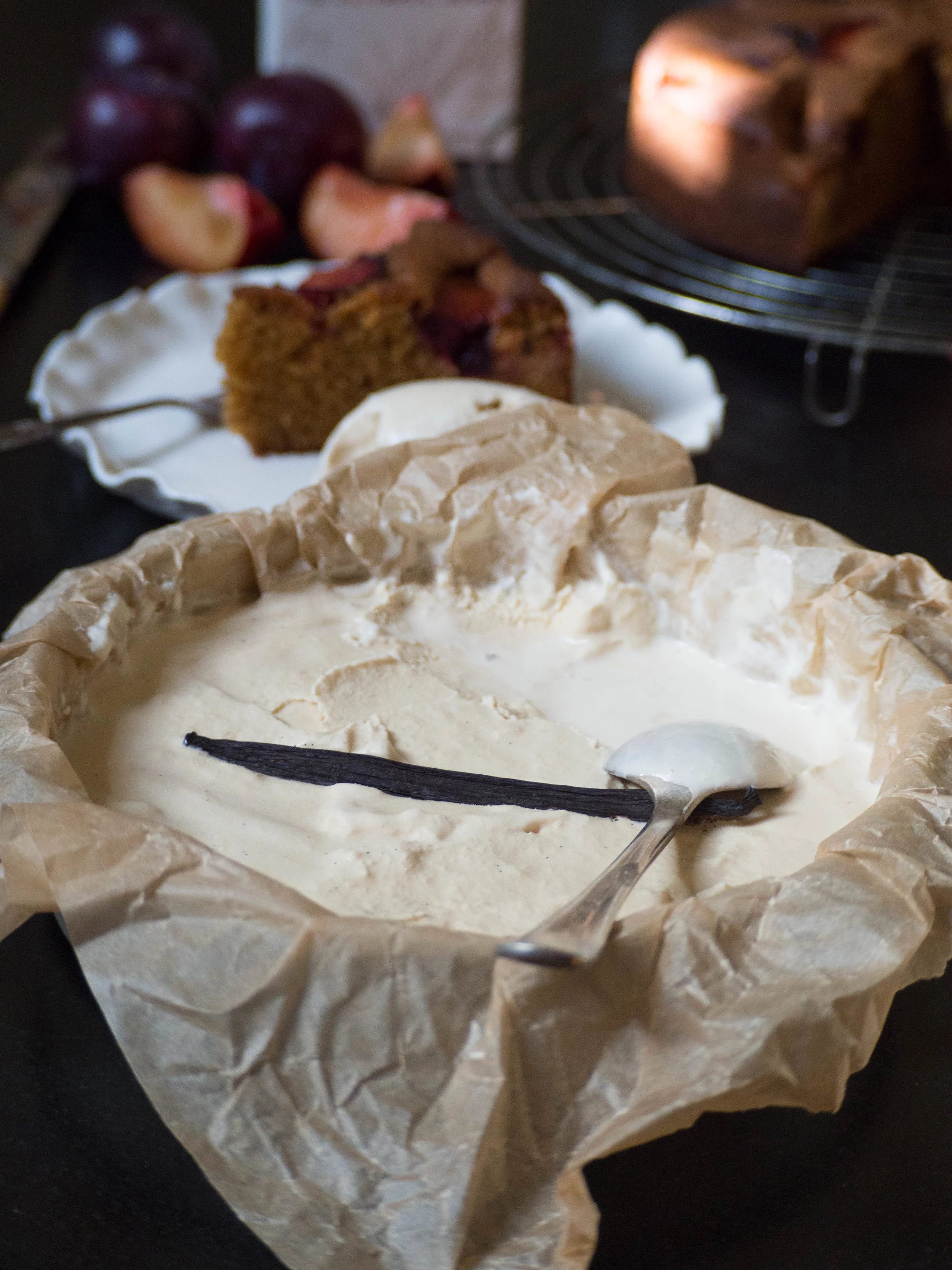 In Cakes & Slices, Other Desserts, Ice Cream Tags Plums, Cake, Grounded Pleasures, Panela Sugar, Vanilla, Ice Cream, Sponsored Posts