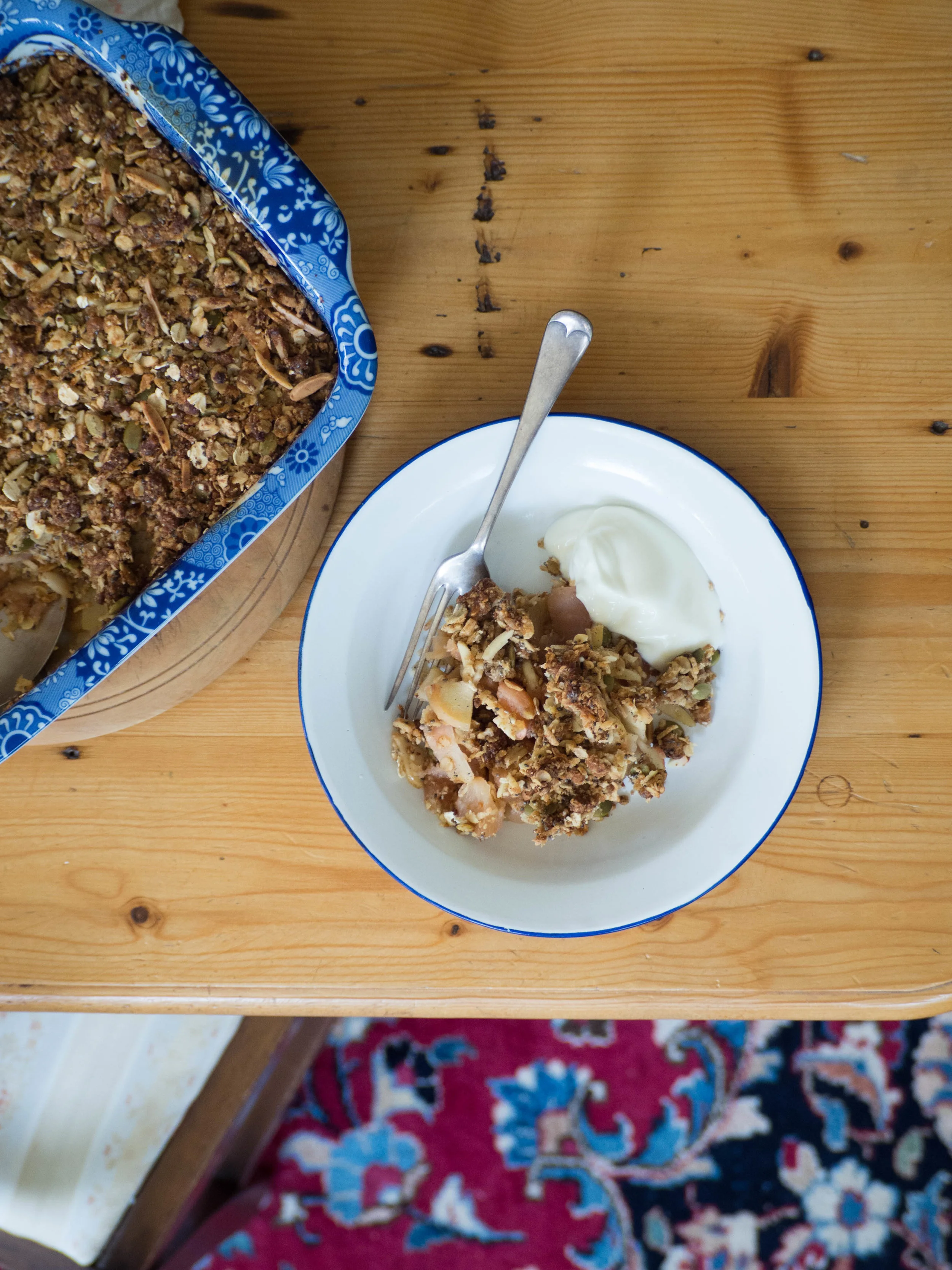Bake in the preheated oven for 30 minutes, or until the crumble topping is golden. Serve warm from the oven with Greek yoghurt or reheat portions for easy breakfasts later on.